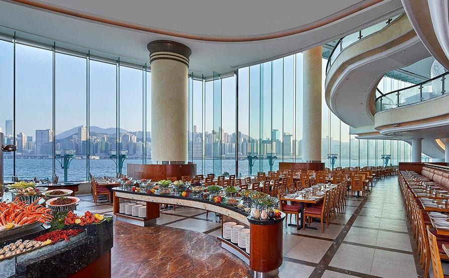於海景餐廳享用自助午餐,超過80款中西日式美食任你選擇,包括酒店招牌海鮮及甜品。供應時間為12:00-14:30,可於維港海景下品嚐豐盛佳餚。餐廳設有智能手機充電位。